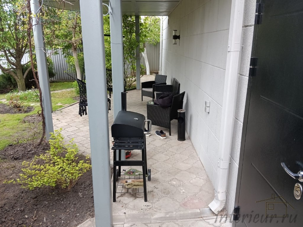 В ходе обустройства зоны раздевалки, мы построили дополнительное помещение и утеплили его по системе «мокрый фасад». На цокольном этаже возвели перегородки из красного кирпича, а также смонтировали сэндвич-трубу под дымоход из парной.
