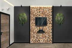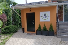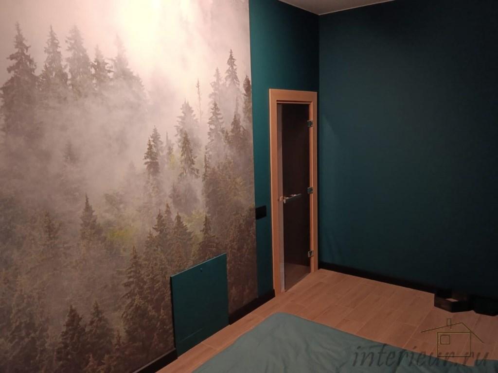 В зоне отдыха смонтированы перегородки из ГКЛВ, на стену уложена керамическая плитка, оставшееся пространство окрашено влагостойкой краской, наклеена фотопечать. В качестве потолочного покрытия использованы натяжные потолки. Установлены две входные двери, двери в санузел, парную, хамам, комнату отдыха. Смонтированы и подключены все необходимые электротехнические приборы: потолочные и настенные светильники, розетки.